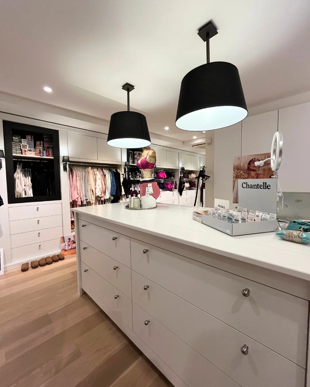 In Dendermonde mochten we lingeriewinkel Mio Sogno volledig onder handen nemen. De bestaande winkel was toe aan een grondige vernieuwing, met een sterke focus op sfeer, overzicht en praktische opbergruimte. De eigenares wilde een warme, elegante winkelbeleving die perfect aansluit bij het luxueuze karakter van de merken die ze verkoopt, zonder in te boeten op functionaliteit. Samen werkten we een totaalconcept uit waarin winkelinrichting, maatwerk kasten en afwerking één harmonieus geheel vormen.
